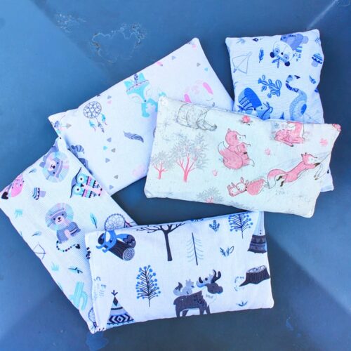 Almohadilla terapéutica de semillas de lino ideal para aliviar los colicos del bebé.