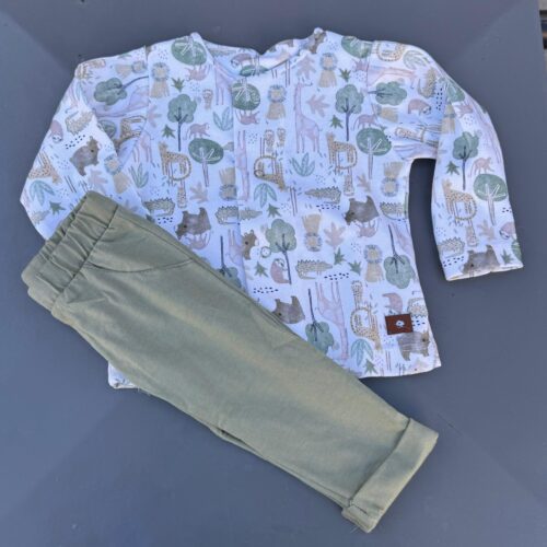 Conjunto de campera y pantalón confeccionado en un 100% de algodon hipoalergenico. Con broches de metal.