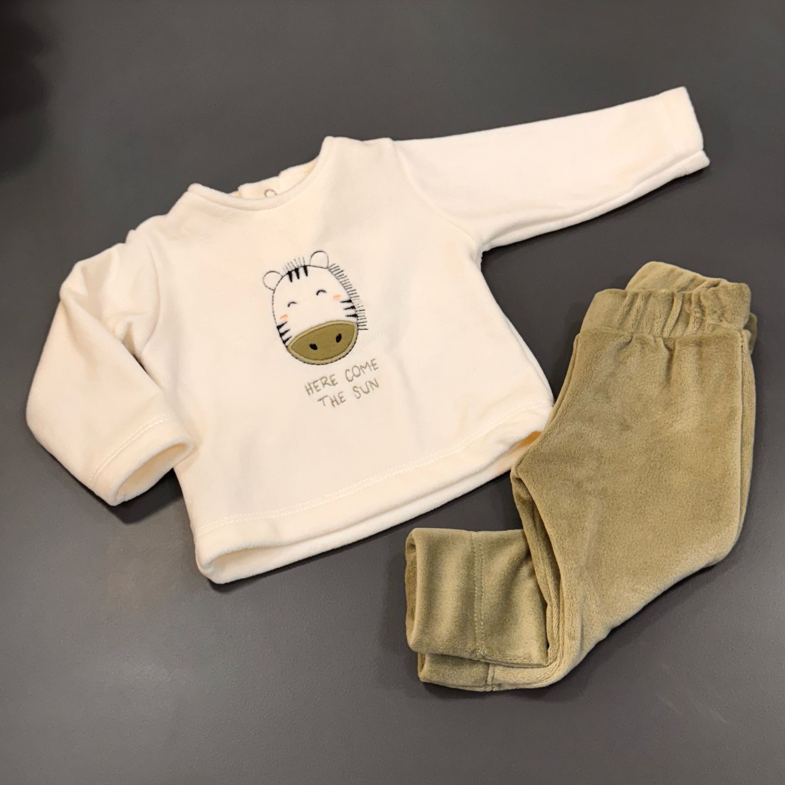 Conjunto de pantalon y buzo confeccionado en plush hipoalergenico, con una suavidad unica que le da abrigo a tu bebe pero a la vez movilidad.
