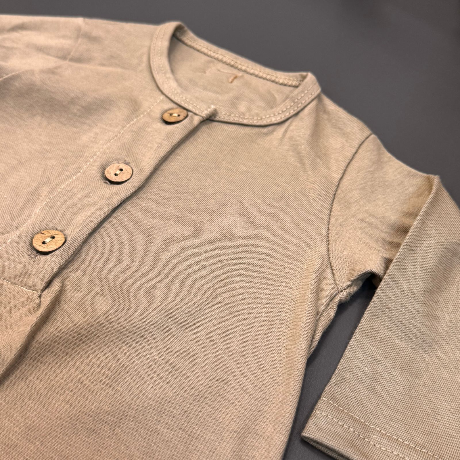 Enterito de algodon sin pie, con detalle de prendedura en la parte delantera con 3 botones que le dan un toque especial.