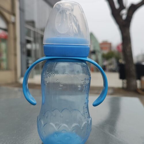 Mamadera con tetina de silicona, CINTURADA para un mejor agarre
