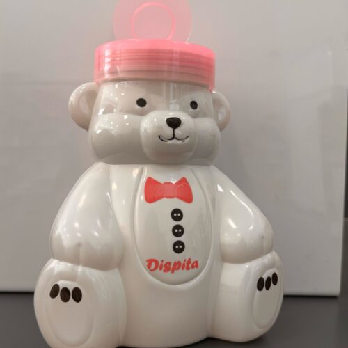 Viene con un dispenser en forma de osito con tapa que evita que las TH se sequen.
