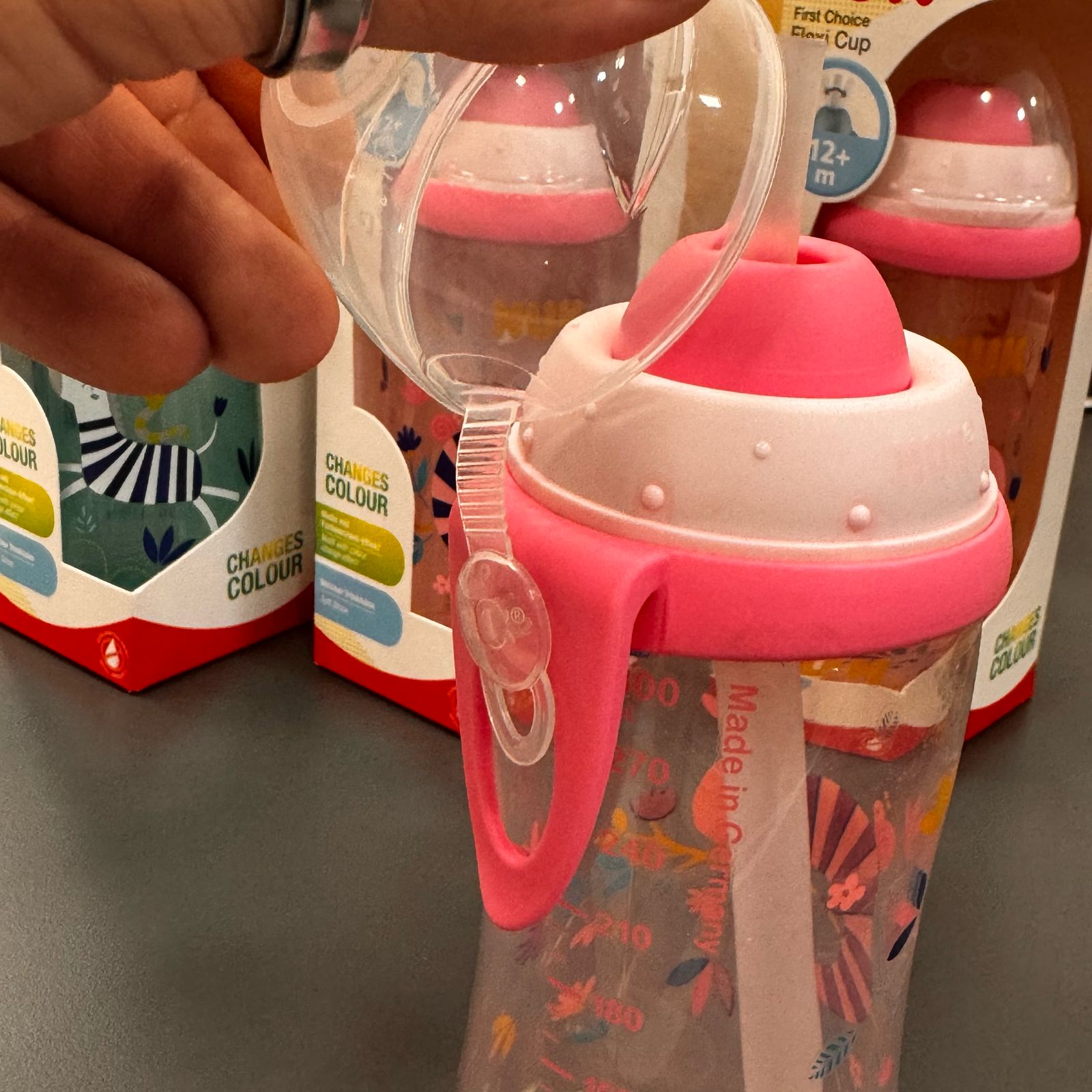 El sorbete de vaso NUK Flexi Cup es suave y flexible. Además, su válvula interna lo hace antiderrame
